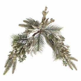 Questo fuoriporta natalizio è un concentrato di spirito festivo. La sua base è composta da rigogliosi rami di pino artificiale, arricchiti da pigne naturali e da luminose bacche dorate che catturano la luce. La struttura interna in metallo gli conferisce la forma e la soliditànecessarie per essere appeso con sicurezza. È una di quelle decorazioni natalizie che arredano da sole, creando un punto focale immediato. È la scelta perfetta per chi cerca sull'arredo online una decorazione da appendere che sia tradizionale ma con un tocco di glamour dato dall'oro.