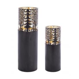Il set di portacandele Whitley è un esempio di design sofisticato. Ogni pezzo è composto da un cilindro in vetro, ideale per proteggere la fiamma della candela. Il cilindro è inserito in una base in metallo nero, da cui si sviluppa una decorazione, anch'essa in metallo, con una finitura dorata. Il set include due pezzi di altezze diverse, perfetti per creare una composizione dinamica. Queste lanterne natalizie sono ideali per chi ama uno stile elegante e prezioso.