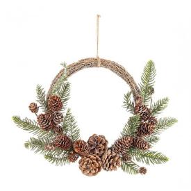 Decora il tuo ingresso con un fuoriporta in legno dal gusto naturale e autentico. Con un diametro di 23 cm e arricchito con pigne vere, è un elemento di grande charme per un'accoglienza calorosa. È la scelta ideale per chi cerca una ghirlanda natalizia rustica e vuole un'alternativa alle classiche ghirlande di abete. Se ami lo stile country o nordico, questo fuoriporta è un pezzo distintivo.
