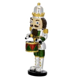 Aggiungi un tocco di tradizione e di eleganza senza tempo alla tua decorazione natalizia con questo raffinato soldatino schiaccianoci della collezione Bagutta. Realizzato in metallo verniciato con una brillante finitura argento lucido e alto 12 cm, questo schiaccianoci con tamburo è un piccolo gioiello. È la decorazione natalizia tradizionale perfetta per chi ama gli oggetti da collezione e desidera un pezzo che unisca la magia della favola alla preziosità del metallo.