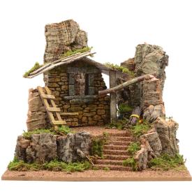 La Capanna in Legno con Scalinata e Rocce di Euromarchi si distingue per il suo design che fonde l'elemento costruito con quello naturale. La struttura principale in legno è affiancata o sormontata da una scalinata e da finte rocce, che creano un effetto di costruzione parzialmente incastonata nel paesaggio. Le dimensioni (34x34xH30 cm) la rendono adatta per presepi di medie dimensioni e per statue per presepe di statura proporzionata. È una delle capanne e minareti (capanna) più particolari per una ambientazione per presepe che voglia stupire per originalità .
