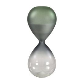 Questa clessidra in vetro è una creazione di grande raffinatezza. La sua unicità risiede nel vetro opaco che sfuma elegantemente dal blu intenso al grigio. All'interno, la sabbia bianca crea un contrasto luminoso e pulito, scandendo il tempo con delicatezza. Con i suoi 14 cm di altezza, è una scultura design di dimensioni perfette per una libreria, una mensola o una scrivania. È un pezzo che dimostra un gusto per i dettagli e per l'arredo di qualità .