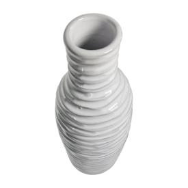 Questo vaso in ceramica di design è un pezzo di grande raffinatezza. La sua forma slanciata, alta 36 cm, è interamente percorsa da un effetto a rilievo orizzontale, che crea un dinamico gioco di luci e ombre. Il colore bianco puro lo rende perfetto per ogni ambiente, dal più moderno al più classico. È il portavasi in ceramica design ideale per ospitare rami decorativi, fiori alti o per essere esposto come una vera e propria scultura. Una delle soluzioni per arredo green più sofisticate e versatili.