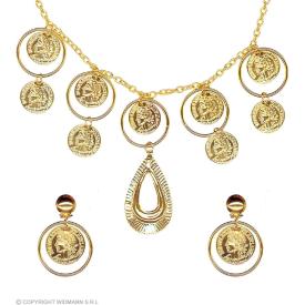 A differenza di gioielli in plastica, questo set in metallo di Widmann, disponibile su M2 Store, offre un aspetto più realistico e prezioso. È la scelta perfetta per chi vuole comprare accessori online per un costume curato nei minimi dettagli. La lavorazione del metallo e il design autentico lo rendono un set di qualitàsuperiore. Sceglilo per sentirti una vera regina d'Egitto, pronta a sedurre Marco Antonio.