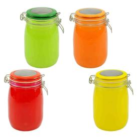 I barattoli cucina ermetici come questo sono essenziali per una buona conservazione degli alimenti in casa. La chiusura metallica a scatto con guarnizione assicura una tenuta perfetta. Il corpo in vetro trasparente ti permette di vedere il contenuto e la quantità rimasta a colpo d'occhio. Con la sua capacità da 1 litro, è un formato versatile e molto utile. Questi barattoli di vetro colorati sono perfetti per chi ama organizzare la propria dispensa a vista con stile.