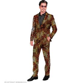 Il nostro costume da adulto per carnevale è un completo "pronto all'uso" per un look da vera star della disco. La giacca e i pantaloni a zampa d'elefante sono realizzati in poliestere e ricoperti da un'iconica stampa leopardata. Il design è un omaggio allo stile più eccessivo e affascinante dell'epoca. È una delle migliori idee di costumi per adulti originali, perché ti fornisce un outfit completo e di forte personalità . Ti basterà una camicia nera e un paio di occhiali da sole per completare l'opera.