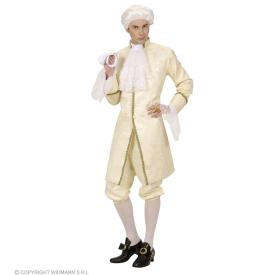 Questo costume uomo è un trionfo di dettagli barocchi. Il set è composto da una giacca lunga e decorata (justaucorps), un gilet (panciotto) broccato, un pantalone al ginocchio (culotte) e un fazzoletto da collo con pizzo (jabot). È la scelta d'eccellenza per chi vuole comprare costumi adulti online e cerca un costume completo e storicamente accurato. Un capolavoro tra i costumi adulti per carnevale, per un'immersione totale nell'opulenza del diciottesimo secolo.