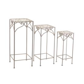 Questo tavolino quadrato è realizzato in ferro con un'elegante finitura bianco anticato, che gli dona un aspetto ricercato e senza tempo. La sua altezza di 63 cm lo rende ideale come porta vaso per piante a cascata, come tavolino da lampada o come comodino alto. Il suo design raffinato si adatta splendidamente a diversi stili di arredamento, dal classico al provenzale.