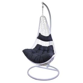 Incluso: Seduta a dondolo in polyrattan bianco, Supporto autoportante in metallo bianco, Cuscino seduta sfoderabile grigio, Cuscino poggiatesta sfoderabile grigio.