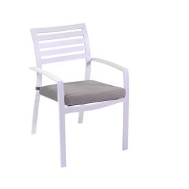 La poltrona 'New Boston' si distingue per il suo design classico e accogliente. La struttura in alluminio verniciato a polvere di colore bianco è solida e totalmente resistente alla ruggine. Il comfort è portato ai massimi livelli grazie ai due cuscini inclusi: uno per la seduta e uno per lo schienale, entrambi in un elegante color grigio e realizzati in tessuto per esterni, sfoderabili e facili da lavare. È una delle sedie e poltrone da giardino più comode e complete del nostro catalogo di arredo giardino online.