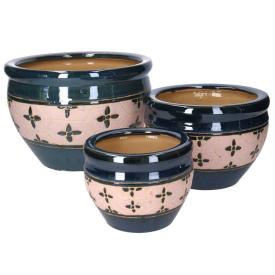 Il set di coprivasi è un accessorio di grande stile. Le tre dimensioni a scalare sono perfette per creare una composizione coordinata. La ceramica di alta qualitàè robusta e durevole. A differenza di vasi e portavasi a tinta unita, il motivo bicolore aggiunge un tocco di dinamismo e raffinatezza. Un set elegante che valorizza le tue piante e si integra perfettamente in un arredo moderno o contemporaneo, arricchendo la tua decorazione.