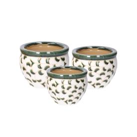 Il set di coprivasi è un accessorio che porta vitalità . Le tre dimensioni a scalare sono ideali per creare una composizione dinamica con le tue piante preferite. La ceramica di alta qualità è robusta e durevole. A differenza di vasi e portavasi a tinta unita, il motivo a foglie crea una continuità visiva con la pianta, esaltandone la bellezza. Un set elegante e versatile per una decorazione che celebra il mondo vegetale.