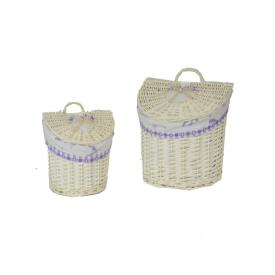 Questi cesti pensili si distinguono per il loro design romantico e la loro funzionalitàsalvaspazio. Realizzati in vimini con una finitura sbiancata, hanno un aspetto leggero e luminoso. La fodera interna in tessuto, decorata con un motivo a tema lavanda, è removibile e lavabile. A differenza di cesti e contenitori da appoggio, questi modelli sfruttano lo spazio verticale delle pareti. Se cerchi decorazioni per la casa online che siano anche utili organizer, questo set è una scelta di grande gusto.