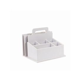 Stai cercando una soluzione completa ed elegante per organizzare la tua scrivania o la tua postazione per il make-up? Il Portatutto in Legno Bianco di Vacchetti è il complemento d'arredo che fa per te. Non è un semplice contenitore, ma un vero e proprio organizer multifunzione. Perché non dare un posto a ogni cosa, con stile?