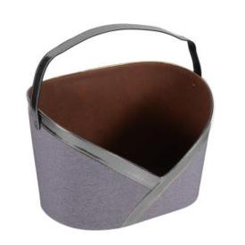 Questo portariviste è un esempio di come i materiali tessili possano arredare. La sua struttura è composta da una sacca in tessuto grigio, sorretta da una leggera ma robusta impalcatura in metallo con finitura argento. Il comodo manico, anch'esso in metallo, ne facilita lo spostamento. La combinazione del grigio con l'argento lo rende un oggetto estremamente raffinato. Questo portariviste in tessuto è una decorazione perfetta per chi ama un'eleganza discreta e un'atmosfera accogliente.