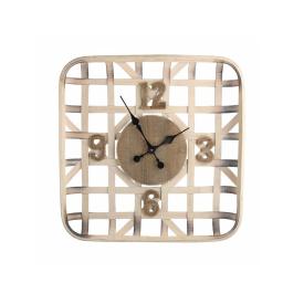 Questo orologio di design si distingue per la sua complessa struttura tridimensionale. La base quadrata è realizzata in legno di abete, che conferisce un aspetto caldo e materico. Su questa base è applicata una cornice e una griglia in ferro verniciato, che creano profonditàe un forte impatto visivo. I numeri romani, anch'essi in metallo, sono grandi e ben visibili, completando il look di questo magnifico orologio da muro. � il pezzo perfetto per chi ama lo stile industriale e i complementi d'arredo importanti.