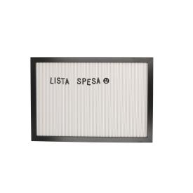Questa lavagna a feltro (letter board) è un classico del design che non passa mai di moda. La struttura è composta da una solida cornice in legno (MDF) verniciata di nero e da una superficie scanalata che permette di inserire e rimuovere facilmente i caratteri. Potrai cambiare il tuo messaggio ogni volta che vuoi, dando libero sfogo alla tua creatività . A differenza delle lavagne tradizionali, questo modello offre un look pulito e ordinato, una scelta vincente per chi cerca decorazioni varie online che siano interattive e di grande tendenza.