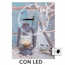 L'orologio quadro di Vacchetti è un oggetto che emoziona. La sua struttura è in legno MDF, su cui è stampata un'immagine ad alta definizione di un paesaggio marino al tramonto, con una lanterna in primo piano. L'orologio è integrato nel quadro, con lancette che si muovono sul cielo. Ma la vera magia è data dalle luci a LED integrate: una luce all'interno della lanterna e altre che simulano le stelle, che si accendono per creare un'atmosfera suggestiva. Questo orologio da muro è un pezzo che arreda sia di giorno che di notte.