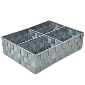 Riorganizza i tuoi spazi con la massima versatilità grazie all'Organizer a 4 Scomparti di Vacchetti. Questo contenitore, in un moderno ed elegante tessuto di poliestere grigio, è la soluzione capiente e modulare per ogni tua esigenza di ordine. Perché è un accessorio così utile? Perché i suoi quattro scomparti quadrati sono perfetti per suddividere e organizzare magliette, body per neonati, accessori o forniture per ufficio. � un must-have tra i cesti e contenitori per un arredo casa funzionale.