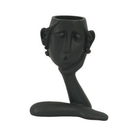 Questo vaso scultura è un concentrato di stile. Realizzato in resina di alta qualità con una finitura nera opaca, riproduce un volto stilizzato in modo astratto e moderno. È un portavaso a viso perfetto per piccole piante grasse o piante aeree, che diventeranno l'acconciatura creativa di questa piccola opera d'arte. È una decorazione che arreda con personalità una scrivania, una mensola o una libreria, portando un tocco di anticonformismo e di design in ogni angolo.