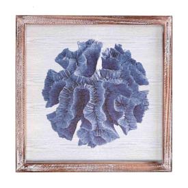 Questo quadro è una finestra sul mare. La sua base quadrata è in legno, con una finitura che evoca i colori della sabbia. Al centro, spicca la sagoma di un corallo, in una profonda e rilassante tonalità di blu. Con le sue dimensioni di 30x30 cm, questo quadro in legno è ideale per creare una composizione a tema marino o per decorare un bagno, una camera da letto o un angolo lettura. � una decorazione che porta un senso di calma e di connessione con la natura.