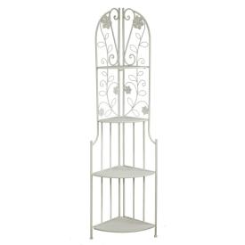 Lo scaffale angolare Milena è un pezzo di grande fascino. � realizzato interamente in metallo, con una finitura verniciata di bianco. Il suo design è impreziosito da decorazioni a ricciolo, che gli conferiscono un aspetto romantico e un po' retrò. I quattro ripiani offrono un'eccellente capacitàcontenitiva per esporre piante, libri o oggetti decorativi, sfruttando al massimo lo spazio verticale. Questa libreria angolare è perfetta per un bagno, un soggiorno o una camera da letto in stile shabby chic.