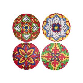 Questo set di mattonelle tonde è un vero jolly per la tua tavola. Ogni pezzo, con un diametro di 20 cm, è perfetto sia come sottopentola per isolare il calore, sia come sottopiatto per creare una mise en place d'effetto. Il set si compone di quattro pezzi con decori assortiti nelle calde tonalità del rosso, che ricordano motivi etnici e portano un'energia positiva in tavola. Realizzati in legno (MDF), sono robusti, durevoli e facili da pulire, rendendoli degli utensili e accessori indispensabili tra i tuoi casalinghi online.