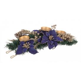 Questo portacandele a 3 posti è pensato per stupire. La base è un vassoio in vetro, finemente decorato con motivi di Poinsettia (la Stella di Natale) in una profonda e regale tonalità di blu con dettagli dorati. Sul vassoio sono posizionati tre eleganti bicchierini portacandela in vetro, anch'essi impreziositi da finiture oro. L'effetto d'insieme è un centrotavola lussuoso e di grande impatto, perfetto per la tavola delle feste, per il mobile del soggiorno o per la mensola del camino. � una delle decorazioni varie più raffinate per il tuo Natale online.