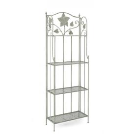 Questa libreria si distingue per il suo design unico. La struttura è realizzata in ferro, mentre i quattro ripiani sono in legno di paulownia, il tutto in una delicata finitura verde salvia. Con i suoi 4 piani, offre ampio spazio per libri, piante o oggetti decorativi. � uno di quei mobili perfetti per un soggiorno, una camera da letto o un bagno in stile shabby-chic.