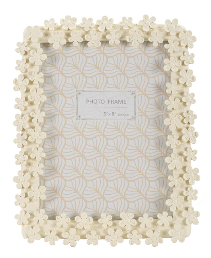 Cornice portafoto marca Mascagni realizzata in resina di colore panna, con bordo effetto corda intrecciata in ...