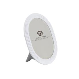 Cornice porta foto marca Mascagni realizzata in resina di colore bianco panna, con bordo effetto corda intrecc...