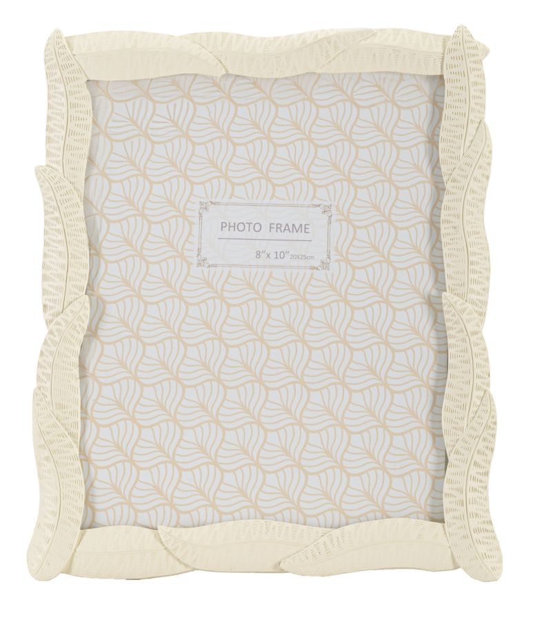 Cornice portafoto marca Mascagni realizzata in resina di colore panna, con bordo effetto corda intrecciata in ...