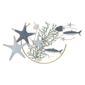 La scultura da parete Stella Marina è un'opera che sa di mare. Realizzata interamente in ferro lavorato e dipinto a mano, raffigura una composizione di stelle marine di diverse dimensioni e colori, che sembrano fluttuare sulla parete. La palette di colori, che gioca con i toni del blu, dell'azzurro e del bianco, porta immediatamente un'atmosfera fresca e rilassante. Con le sue dimensioni di 95 cm, questo pannello in metallo è una decorazione da parete perfetta per il soggiorno, la camera da letto o il bagno di una casa al mare.