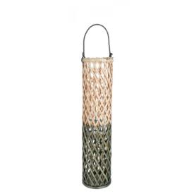 La lanterna da esterno (per uso coperto) modello Layla è un tributo alla bellezza dei materiali naturali. La base in legno offre stabilità a una sinuosa struttura in bambù intrecciato, dove il colore naturale si alterna a fasce di un verde riposante, creando un effetto visivo unico. Il portacandela interno in vetro garantisce la massima sicurezza. A differenza delle comuni lanterne da giardino, la Layla è un pezzo scultoreo che arreda con personalità . � la scelta perfetta per chi desidera acquistare portacandele da terra online che siano espressione di uno stile di vita rilassato e a contatto con la natura.