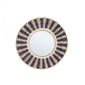 Lo specchio Namibia è un esempio di design creativo. La sua cornice rotonda ha una solida struttura in metallo, che ne garantisce la durata e la stabilità . Questa struttura è poi avvolta e decorata da un fitto intreccio di corda di cotone colorata, nei toni del blu e del bianco, che crea un motivo grafico e materico di grande effetto. Con un diametro di 40 cm, è uno specchio versatile, perfetto da usare da solo o in composizione con altri della stessa serie per creare una galleria a parete. � una delle soluzioni di arredo online più originali tra i quadri, tele e specchi.