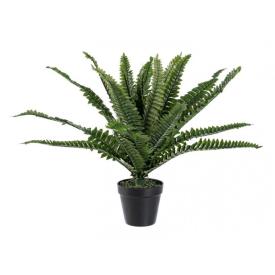 Questa pianta di Felce finta è stata progettata per essere il più realistica possibile. Le sue 24 fronde, realizzate in materiale sintetico (PE) con un'anima in filo metallico, sono completamente modellabili. Questo ti permette di aprirle e dare alla chioma un aspetto più o meno folto, a seconda del tuo gusto. Le foglie riproducono fedelmente la texture e la forma frastagliata della felce vera. La pianta è già fornita con un vaso in plastica nero, che ne assicura la stabilità . A differenza delle piante vere, questa felce non teme la scarsa luminosità o gli sbalzi di temperatura.