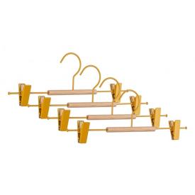 Non lasciare che gonne e pantaloni si rovinino! Il set di 4 stampelle ocra con clip antiscivolo è la soluzione garantita. Ordina ora e goditi un armadio perfetto e colorato!< p>