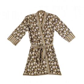 L'accappatoio a kimono Calais offre una vestibilità comoda e versatile. Il taglio dritto e la cintura in vita lo rendono pratico e adatto a ogni silhouette, mentre il tessuto in 100% cotone garantisce una sensazione di morbidezza unica sulla pelle e un'ottima assorbenza. La fantasia a tulipani stilizzati su fondo nero è un dettaglio di stile che lo rende moderno e chic, perfetto da indossare non solo dopo la doccia, ma anche come elegante capo loungewear per iniziare la giornata con grinta e raffinatezza.