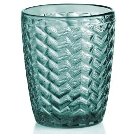 Realizzato in vetro ottanio con un incantevole effetto spina di pesce, questo bicchiere da ml.270 aggiunge un tocco di raffinatezza a qualsiasi tavola.