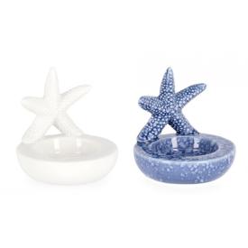 Questo portatealight di design è un oggetto di grande fascino. Realizzato in porcellana di alta qualità , riproduce fedelmente la forma di una stella marina. La superficie è traforata, permettendo alla luce di una candela tealight di filtrare e creare un'atmosfera calda e suggestiva, che ricorda i riflessi del sole sull'acqua. Il prodotto è disponibile in due varianti di colore assortite. � la decorazione da tavolo perfetta per un arredo in stile costiero, per il bagno o come bomboniera a tema mare.