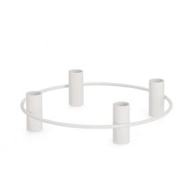 Questo portacandele a 4 posti si distingue per la sua elegante forma circolare, perfetta per essere posizionata al centro di un tavolo rotondo o quadrato. La struttura è realizzata in ferro verniciato a polvere in una finitura bianca, pulita e luminosa. I quattro bracci, disposti a raggiera, sorreggono altrettanti bicchierini in vetro trasparente, pronti ad accogliere le tue candele preferite. � una decorazione da tavolo che invita alla condivisione, un must-have tra i portacandele e lanterne per chi ama un design che favorisce l'incontro.