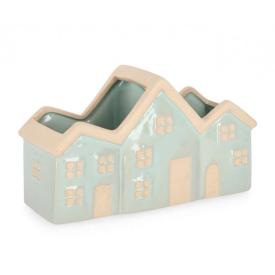 Incluso: Set di 2 vasi Khloe a forma di casa in porcellana azzurra.