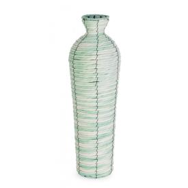 Il vaso Afrika è un esempio di stile e artigianalità. � interamente realizzato in terracotta, un materiale naturale e poroso che dona un aspetto autentico e vissuto. La decorazione, con i suoi motivi geometrici bianchi su base verde, è realizzata a mano, rendendo ogni vaso leggermente diverso dall'altro. Con un'altezza di 57 cm, è un pezzo di grande impatto, perfetto per essere posizionato a terra. � una delle soluzioni di arredo online più amate da chi cerca vasi e portavasi che siano delle vere e proprie sculture.
