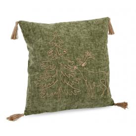 Cuscino arredo firmato Bizzotto modello Amyas, con fodera effetto velluto di colore verde, imbottitura in poli...