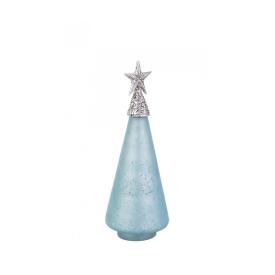 Il modello Glow si distingue per la sua lavorazione in vetro con una delicata finitura azzurro opaco, una scelta cromatica di tendenza che si allontana dai classici colori natalizi. La silhouette stilizzata dell'albero è impreziosita da una piccola stella dorata in cima e, soprattutto, da una fila di luci a LED interne che, una volta accese, creano un'atmosfera calda e sognante. Alto 34 cm e alimentato a batterie, questo pino luminoso è perfetto per decorare mensole, scrivanie o per creare un centrotavola natalizio che non necessita di prese elettriche. Una vera chicca per il tuo Natale online.