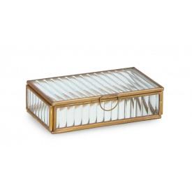 Il portagioie Tehri è un trionfo di eleganza. La sua struttura è composta da pannelli in vetro a righe, che creano un interessante gioco di luci, montati su un telaio in metallo con finitura dorata. Con le sue dimensioni di 18x10.5 cm, è ideale per contenere collane, bracciali e orecchini, trasformandoli in una piccola esposizione personale. A differenza delle scatole chiuse, questo portagioie in vetro ti permette di vedere e scegliere facilmente l'accessorio da indossare. La sua estetica preziosa lo rende un organizer per gioielli perfetto per un arredo casa in stile Art Déco, moderno o classico-contemporaneo.
