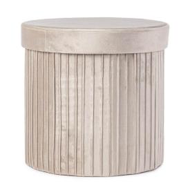 Scegli l'eleganza versatile per la tua casa. Acquista ora il pouf contenitore in velluto beige e la spedizione è gratuita e garantita per ordini superiori a 100 euro!