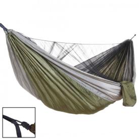 Incluso: Amaca con zanzariera, 2 corde (2 metri cad.), 2 moschettoni, Sacca per trasporto.