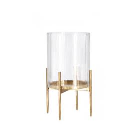 La particolarità della lanterna Siwan Righe risiede nel suo corpo cilindrico, realizzato in vetro trasparente con una delicata lavorazione a righe verticali. Questa texture non solo arricchisce l'estetica della lanterna ma crea anche affascinanti effetti di rifrazione della luce. La base e la struttura superiore, realizzate in acciaio con una finitura galvanica color oro, aggiungono un tocco di eleganza e preziosità . Questa lanterna in vetro lavorato è un oggetto sofisticato, ideale per soggiorni, camere da letto o come lussuoso centrotavola. � la scelta vincente per chi cerca lanterne decorative online che offrano qualcosa in più di un semplice contenitore per candele.