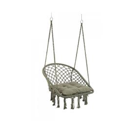 Sedia dondolo, cuscino, barra in legno, anello di sospensione